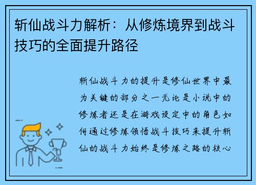 斩仙战斗力解析:从修炼境界到战斗技巧的全面提升路径