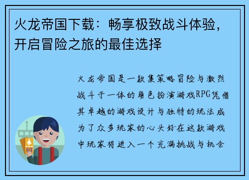 火龙帝国下载:畅享极致战斗体验,开启冒险之旅的最佳选择
