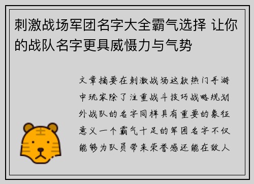 刺激战场军团名字大全霸气选择 让你的战队名字更具威慑力与气势